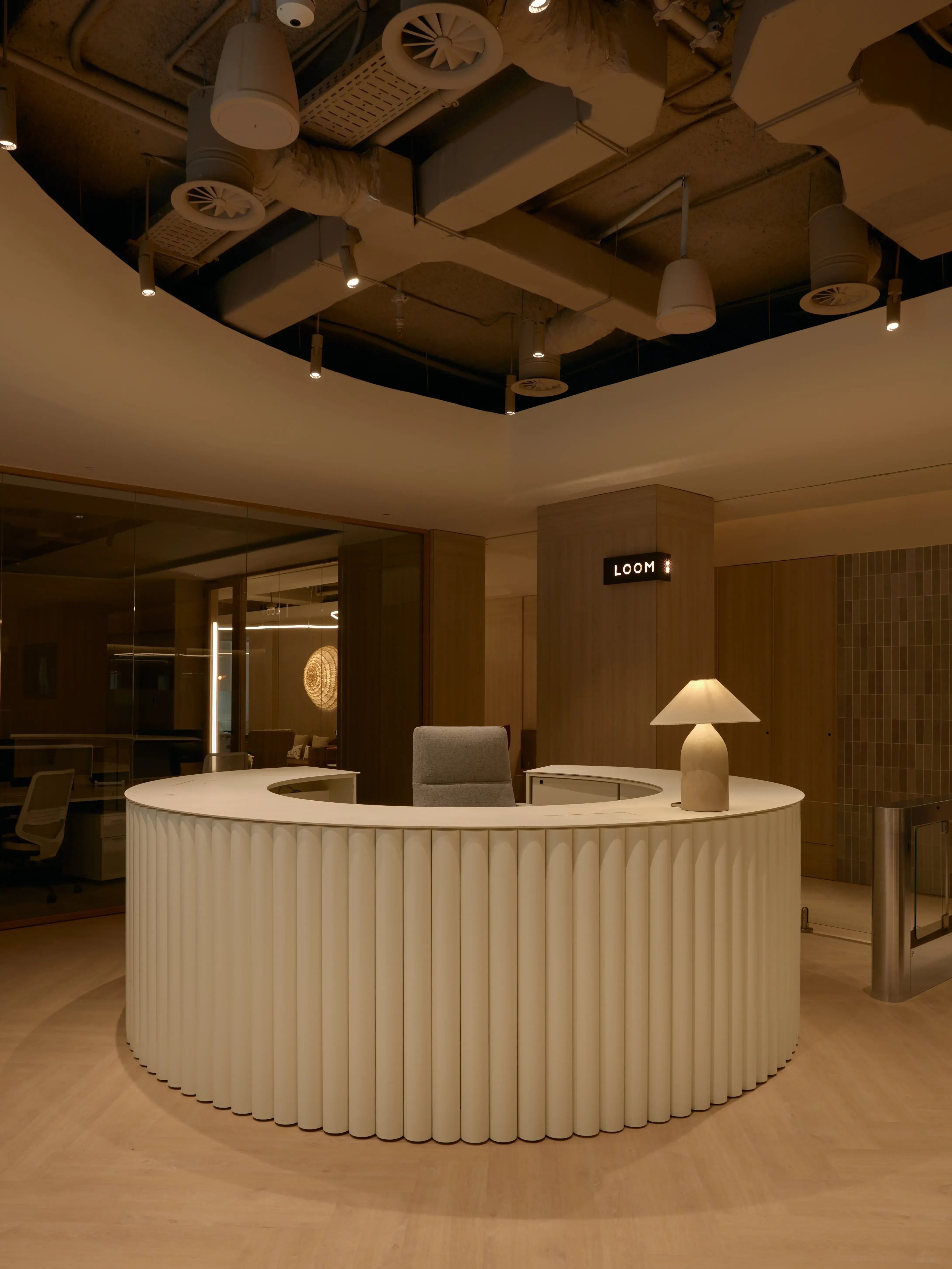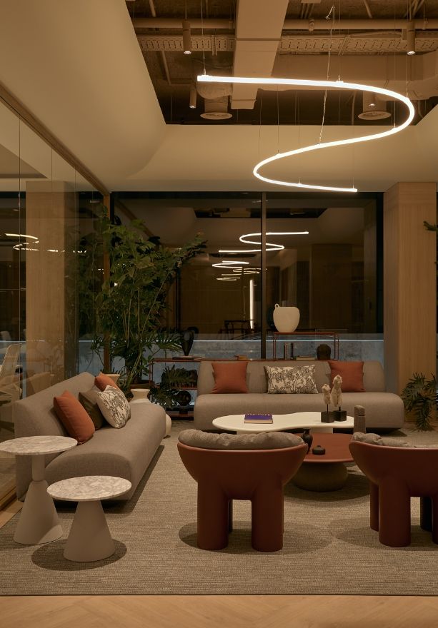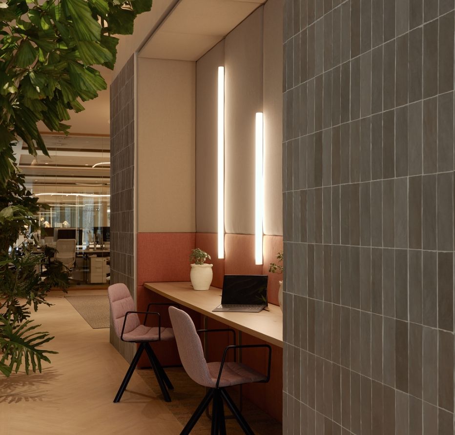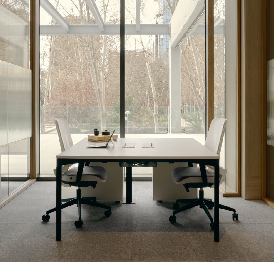 Diseñamos un coworking de 3.100 m² en AZCA organizando el espacio desde núcleos centrales que distribuyen las áreas en dos partes diferenciadas. La recepción y despachos privados se delimitan mediante sistema de almacenamiento y mamparas de madera, mientras los núcleos centrales integran las dotaciones del coworking: salas de reuniones, área de office y elementos como phone booth, be to be, printer, y salas destinadas para mejorar el confort como sala de quiromasajes y sala de relax, preparadas para el descanso de los usuarios.