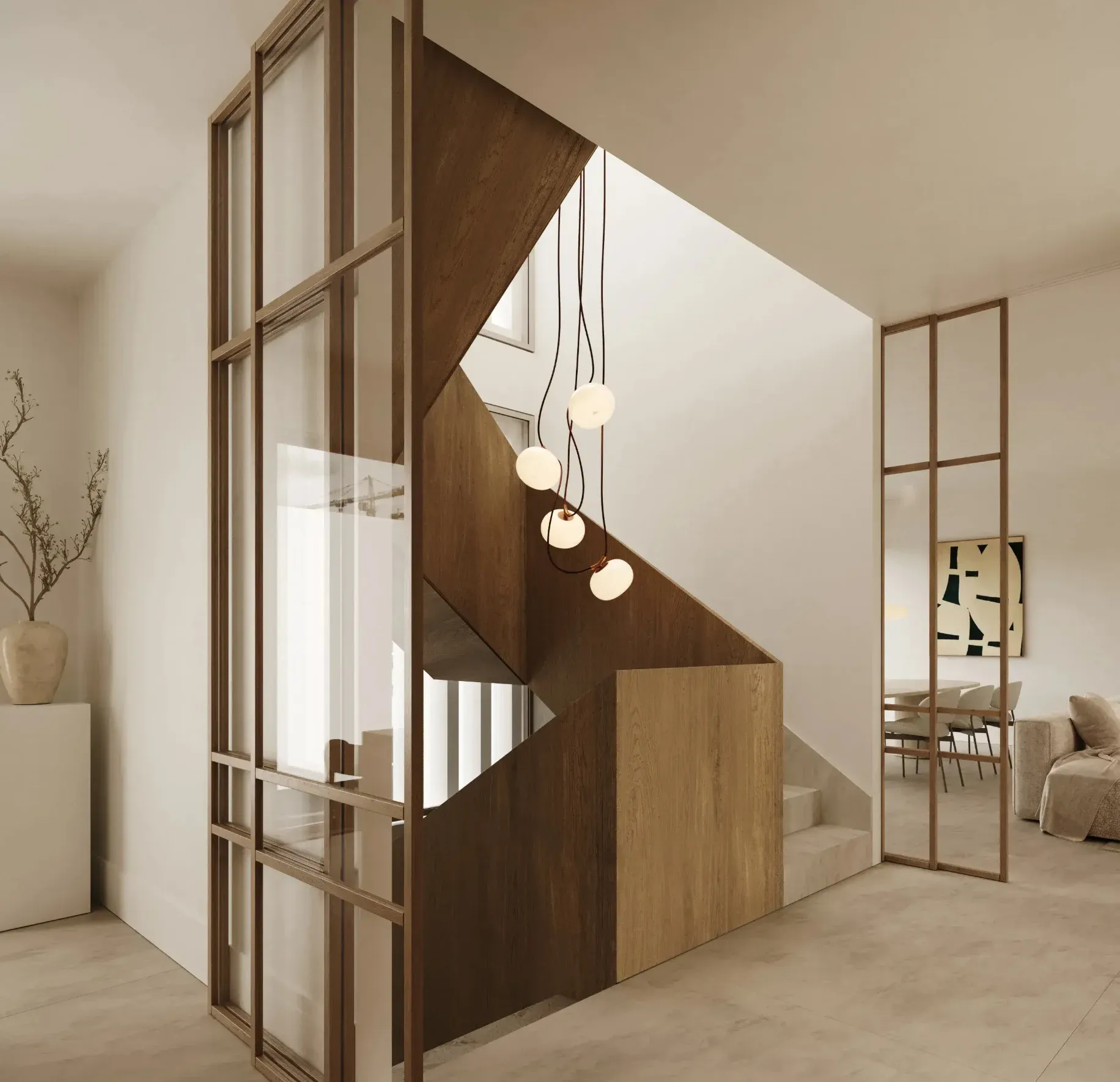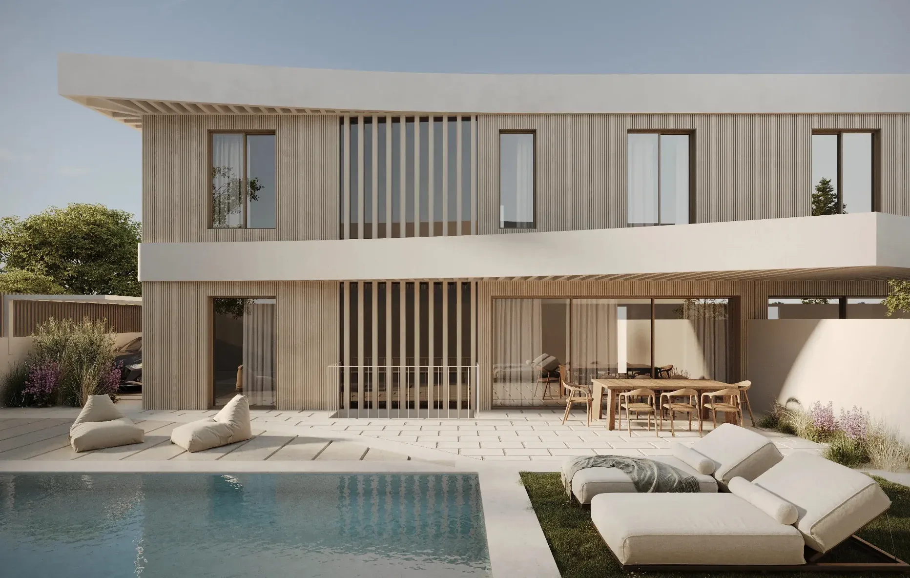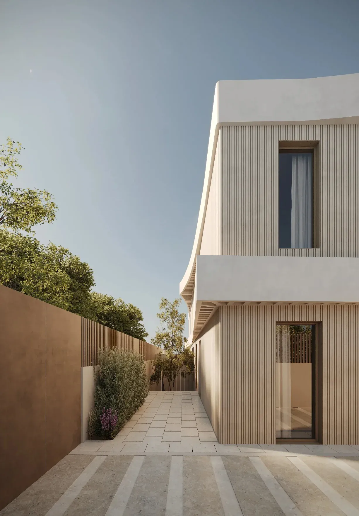 Diseñamos cuatro viviendas adosadas organizadas dos a dos hacia las calles Nalón y Arroyo del Tesoro en Pozuelo de Alarcón. La propuesta busca equilibrar una imagen contemporánea y atemporal, logrando una identidad marcada a través de la combinación de elementos distintivos y materiales cálidos que armonizan tanto en el exterior como en el interior del conjunto. Exteriormente el conjunto destaca por la linealidad del volumen contrastado con suavidad de las líneas curvas, lo que añade un carácter dinámico.