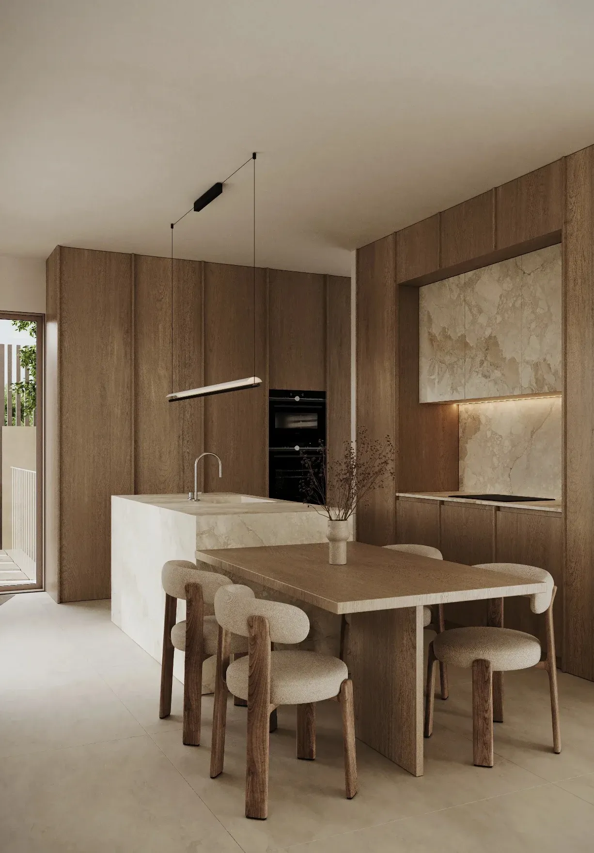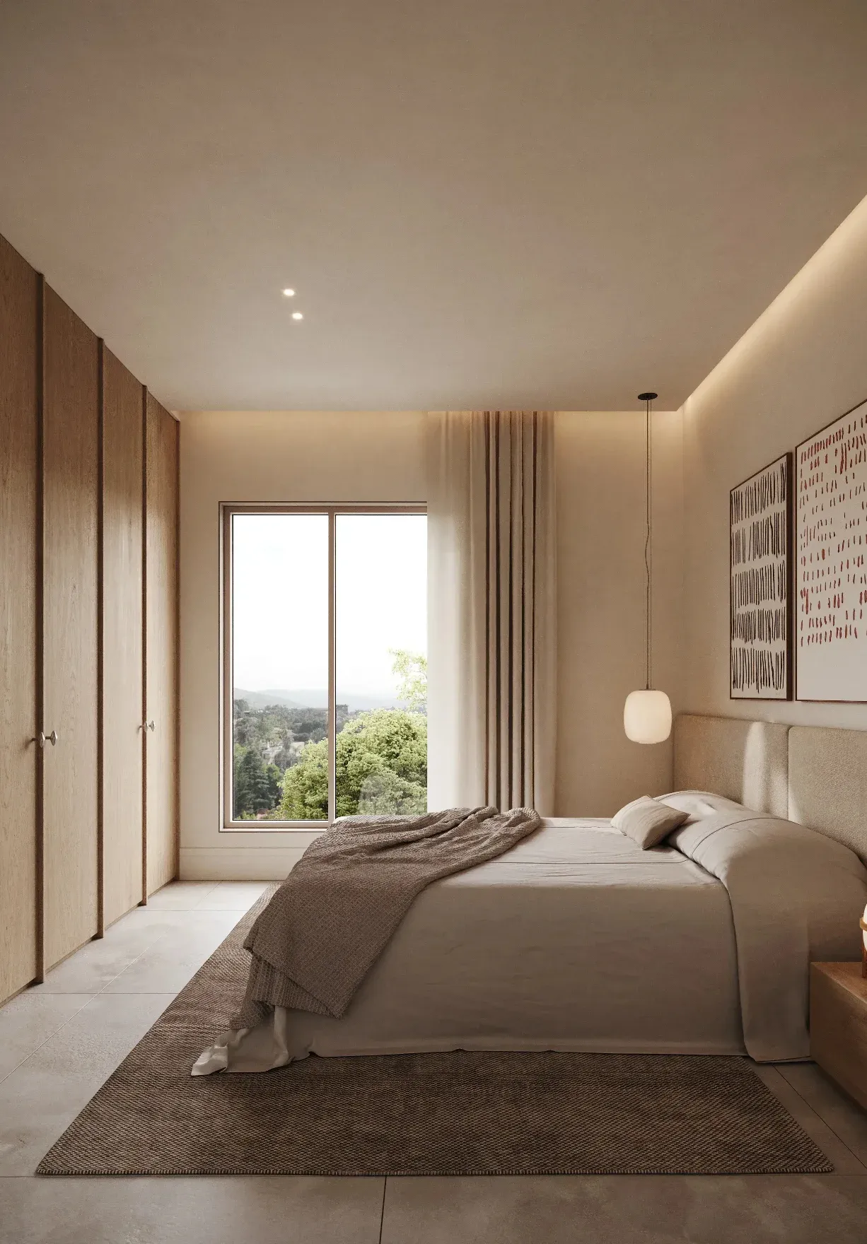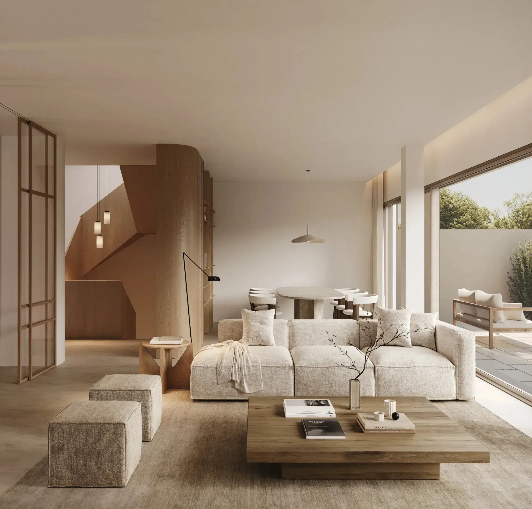 Diseñamos cuatro viviendas adosadas organizadas dos a dos hacia las calles Nalón y Arroyo del Tesoro en Pozuelo de Alarcón. La propuesta busca equilibrar una imagen contemporánea y atemporal, logrando una identidad marcada a través de la combinación de elementos distintivos y materiales cálidos que armonizan tanto en el exterior como en el interior del conjunto. Exteriormente el conjunto destaca por la linealidad del volumen contrastado con suavidad de las líneas curvas, lo que añade un carácter dinámico.